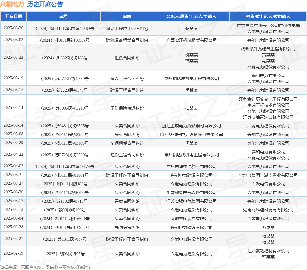 本站消息智慧优配,根据天眼查APP显示智慧优配,近日公布了一则兴能电力建设有限公司作为被告/被上诉人的开庭公告,详细内容如下: